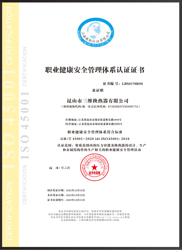 昆山市三維換熱器有限公司注冊(cè)資本5000萬(wàn)元,資產(chǎn)2.1億元,公司地址位于江蘇省昆山市周市鎮(zhèn)蕭林東路3898號(hào),法人代表為顧安生,公司設(shè)有技術(shù)部、生產(chǎn)部、檢驗(yàn)部。